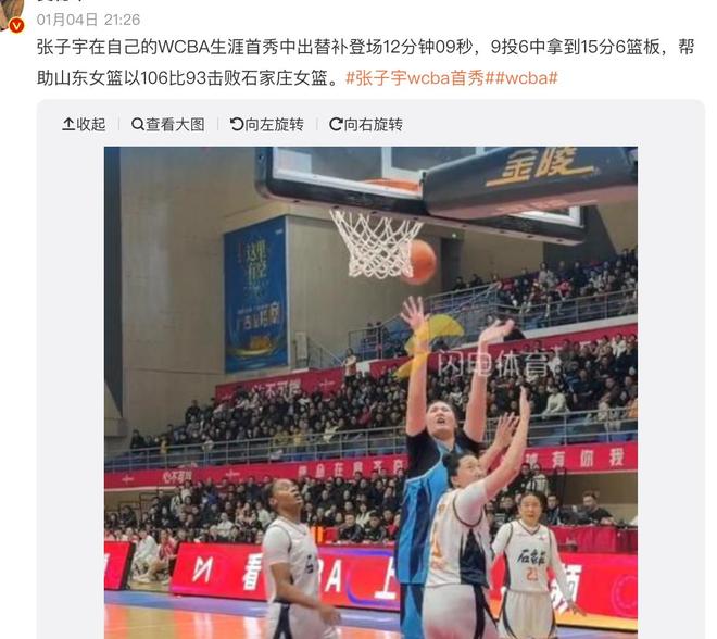 各位球迷都知道,女姚明張子宇自從出道以來,一直備受很多球迷的關(guān)注,大家也都期待她能夠在將來的國際賽場當(dāng)中大殺四方。而如今她的職業(yè)生涯也不斷刷新著記錄。在新賽季W(wǎng)CBA比賽到來的時候,張子宇也是壓哨簽約了山東女籃,并且在最近迎來了首場比賽。