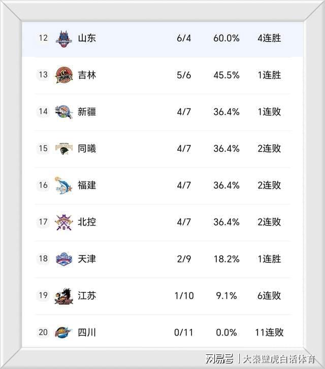 ③、昔日總冠軍四川男籃0勝11負難嘗一勝,繼續(xù)排名墊底。
