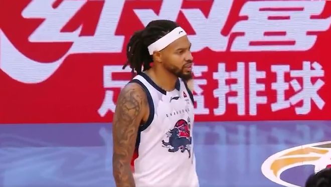 第四節(jié)賽場突發(fā)火藥味!比賽還剩下8分鐘34秒,山東外援珀賽爾殺入北京隊(duì)禁區(qū),一躍而起雙腳騰空隔扣了周琦,