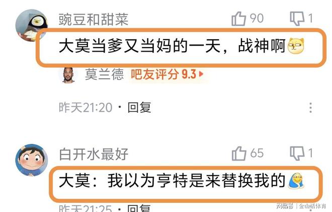 賽后,許多遼寧球迷對(duì)大莫的表現(xiàn)大加贊賞?!按竽?dāng)?shù)之?dāng)媽的一天,戰(zhàn)神啊”;“大莫:我以為亨特是來替換我的?!?;“手帝就是遼籃的晴雨表,威爾斯真大腿,莫蘭德爆棚,王嵐嵚越打越自信,這場可以了?!?;“去年把莫藍(lán)德拿下,我遼今年絕對(duì)不會(huì)散架成這樣”……