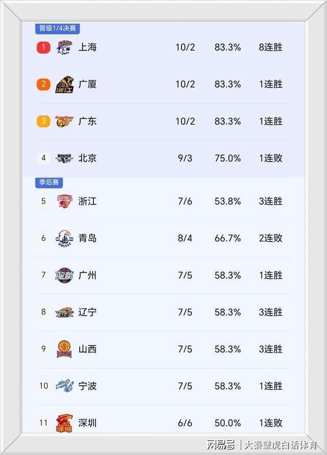 ③、榜首前三積分完全相同,分別是上海、廣廈和廣東隊(duì)!