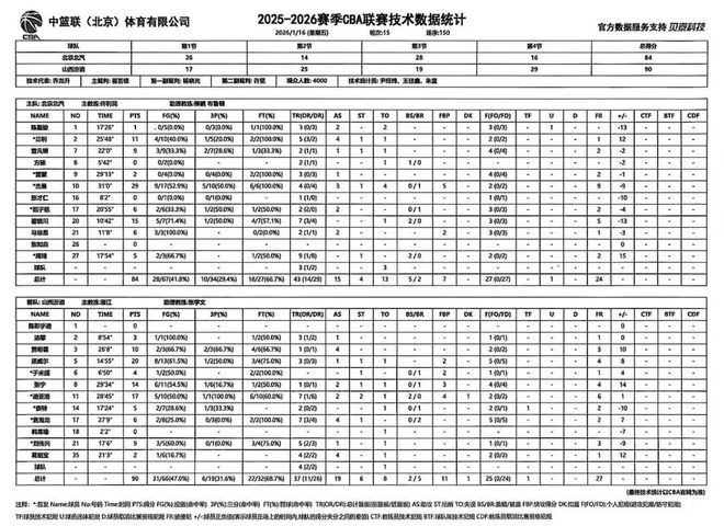 北京時間2026年1月16日19:35,2025-2026賽季CBA聯(lián)賽常規(guī)賽第15輪繼續(xù)進行,山西汾酒客場挑戰(zhàn)北京北汽。兩隊歷史上共交手52次,山西汾酒18勝34負;上賽季兩隊交手5次,山西汾酒2勝3負。本場比賽,山西隊背負巨大壓力,開局依舊慢熱,進攻端畏首畏尾,一度陷入停滯。經教練組調整后,全隊團結一致、力拼防守,始終緊咬比分,末節(jié)關鍵時刻展現(xiàn)出足夠韌勁,最終成功取勝。全場比賽結束,山西汾酒90:84戰(zhàn)勝北京北汽。