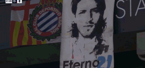 第21分鐘,比賽第21分鐘,全場鼓掌致意前西班牙人隊長達尼-哈爾克