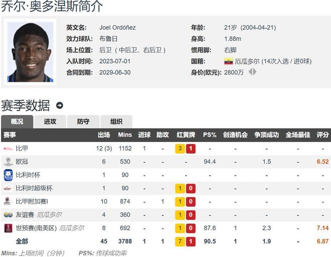 奧多涅斯的轉會完畢之后,那么整個厄瓜多爾的中后場主力悉數(shù)效力五大聯(lián)賽,這也會創(chuàng)造一項非常有價值的新紀錄。奧多涅斯是厄瓜多爾國家隊的首發(fā)后衛(wèi)司職中后衛(wèi)的,也可以打邊后衛(wèi)的,在世預賽的整體表現(xiàn)非常出色。雖然他們被扣掉了3分,不過仍舊拿到了8勝8平2負的成績,排在整個世預賽南美區(qū)的第二名,比巴西的分數(shù)還要多。進了14個球,僅僅丟掉5個球,發(fā)揮堪稱完美。