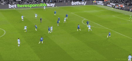 第11分鐘,曼城獲得前場(chǎng)位置不錯(cuò)的任意球,謝爾基沒(méi)有射門(mén),而是選擇傳球,恩佐反應(yīng)迅速,完成解圍。