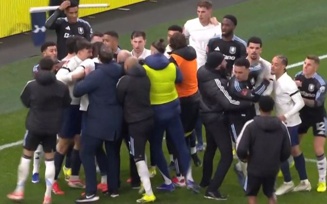 這次群架的導(dǎo)火索,在于比賽第85分鐘,當時熱刺已經(jīng)1-2落后,心態(tài)失衡的帕利尼亞,在邊線附近一次毫無必要的“廢人”式飛鏟,掀翻了羅杰斯。后者痛苦倒地打滾,看到愛徒遭到惡劣侵犯,場邊的維拉主帥埃梅里,憤怒攤手抗議。